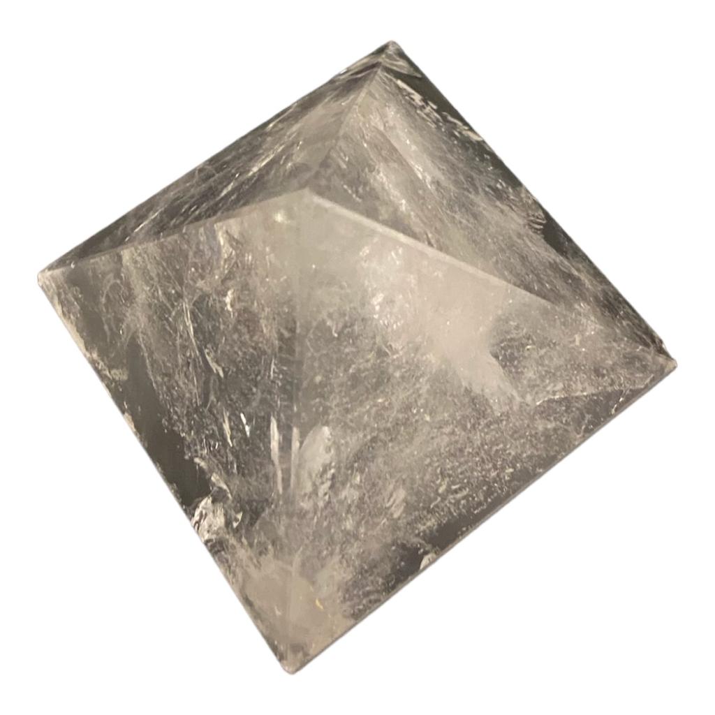 Pirâmide cristal transparente, poderosa pedra de cura sendo nesse formato apropriado para absorver energias negativas e bloqueios dos chackras, substituindo por uma energia vibrante. Alinha e harmoniza todos os chackras, principalmente os superiores, representa a luz que guia, reforçando a conexão espiritual. Sua energia é receptora, abundante e renovadora amplificador da luz interior, da criatividade, da inteligência abrindo caminho e ajudando na materialização das coisas.